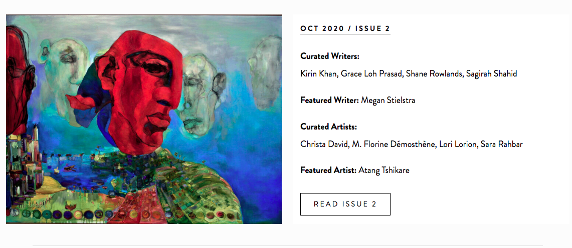 In every issue of Khรดra, we feature the work of a curated team of four writers and four artists. This team will change every four months. In addition, we feature the work of one groundbreaking writer and one visual artist.